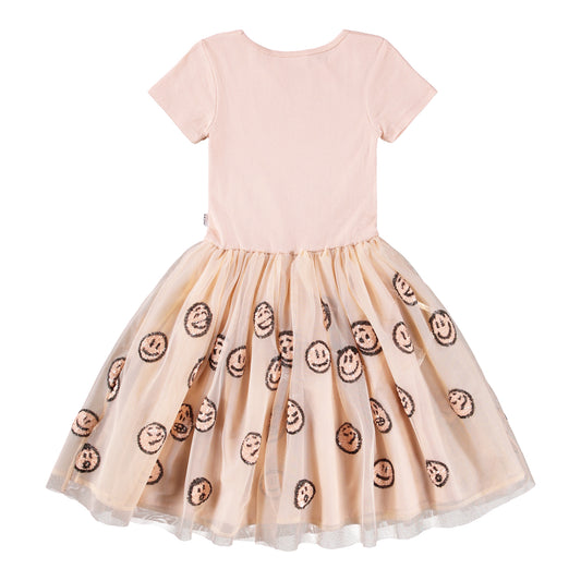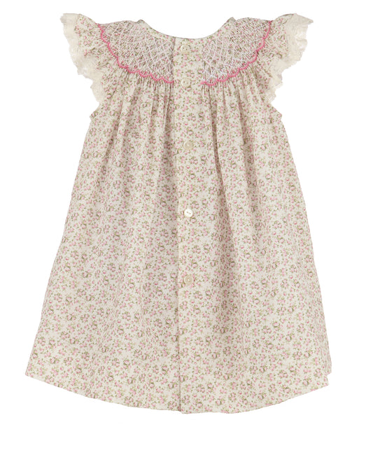 Luli & Me Tea Roses Smock Bishop Pink Dress