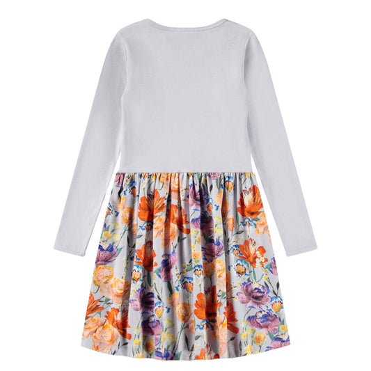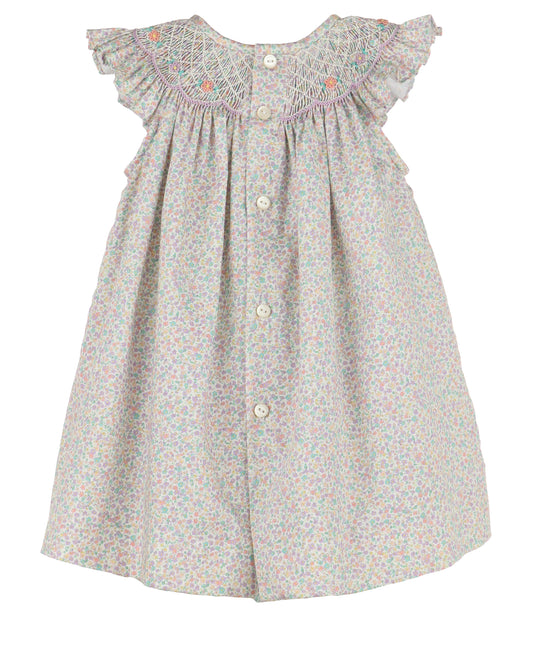 Luli & Me Lilac Floral Print Smock Bishop Dress