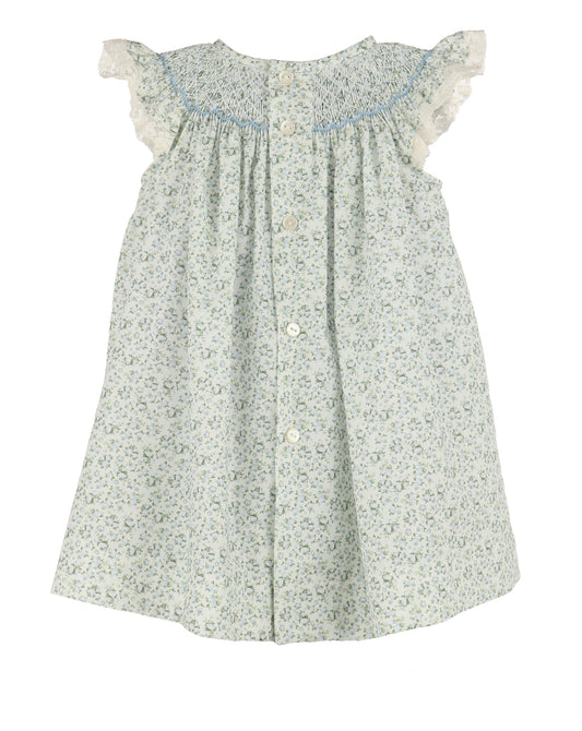 Luli & Me Girls Tea Roses Smock Blue Dress