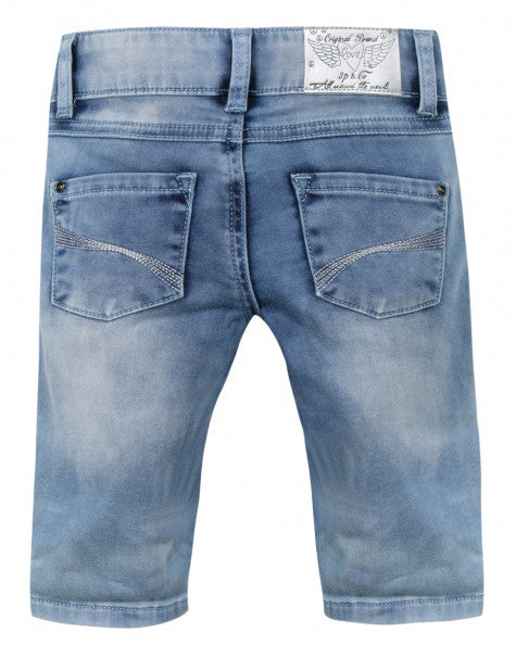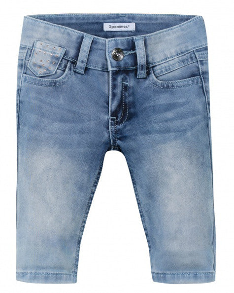 3Pommes girls denim bermuda shorts from “Licorne Girl” collection. Ultra soft stretchy material with colored denim finish. Slim fit with adjustable waist and button/zipper fastening on front. Front pockets and decorated coin pocket. Ba…