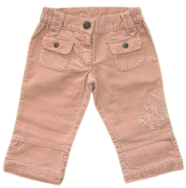Confetti 3/4 length pants in ultra soft pink velour. Faux pockets on front.