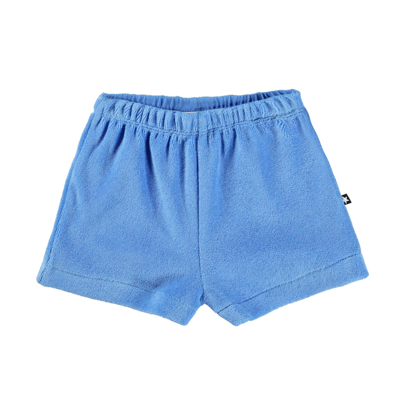 Blue terry shorts with elasticated waistband.
