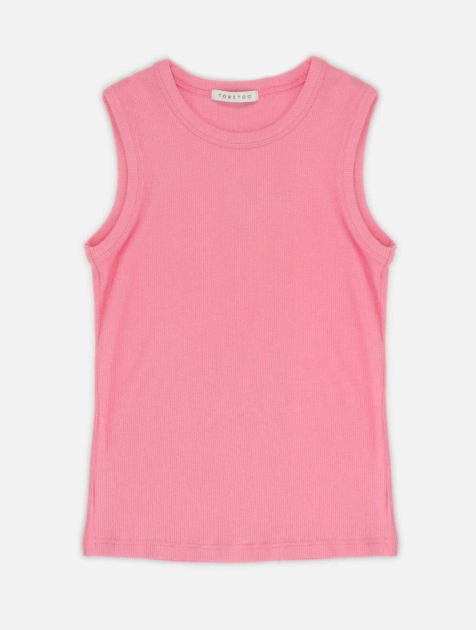 Soft ribbed top in bubble gum pink.